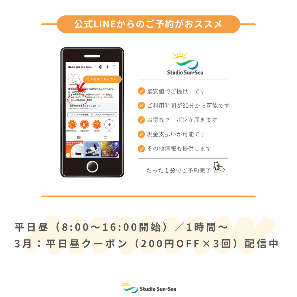 Studio Sun-Seaは、リール撮影や自撮り練習などの撮影用途にもご利用いただけるレンタルスタジオです。
